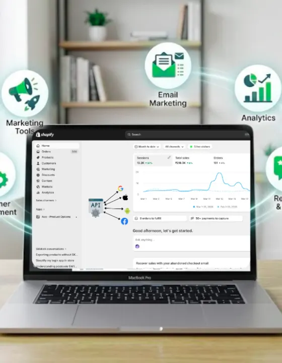 Extend your store’s power with seamless integrations. We connect Shopify with CRM platforms (HubSpot, Salesforce), ERP systems, loyalty programs, email marketing tools (Klaviyo, Mailchimp), live chat, and marketplace channels like Amazon and Flipkart. Every integration is tested rigorously for stability, performance, and data accuracy.